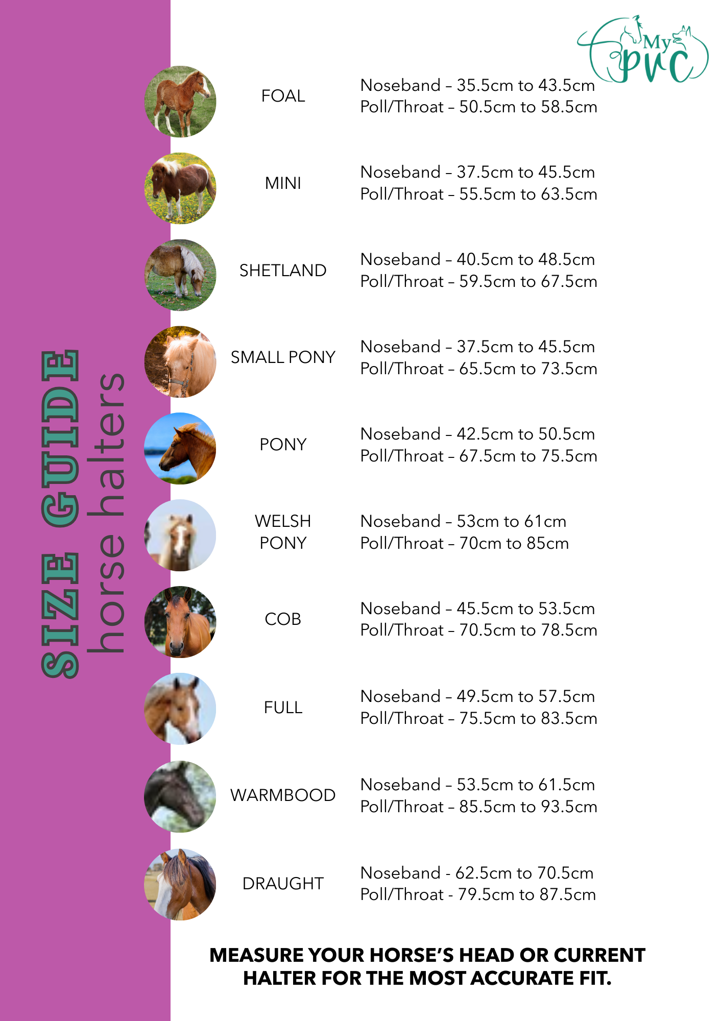 Foal, Mini, Shetland, Welsh Pony and Pony halters are crafted from 20mm wide PVC webbing, while all other sizes are made using 25mm wide PVC webbing.